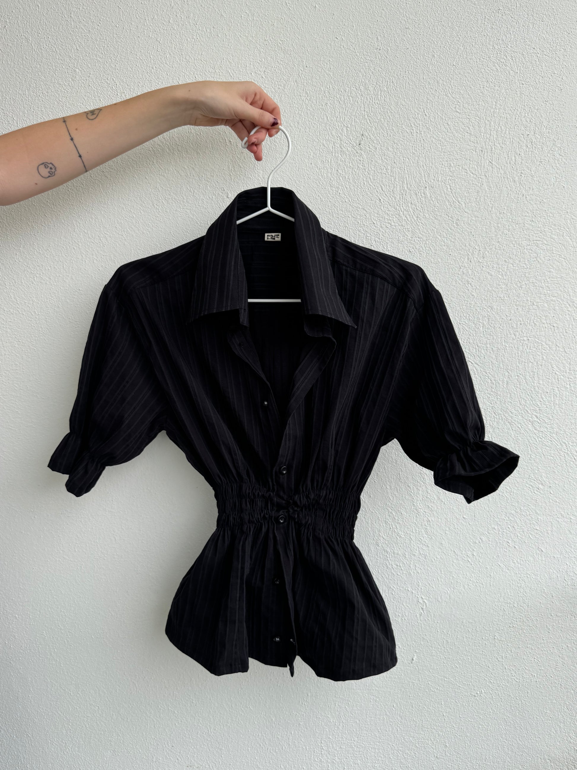 Observera: Blusen är ihopsydd mellan två knappar och träs på över huvudet.