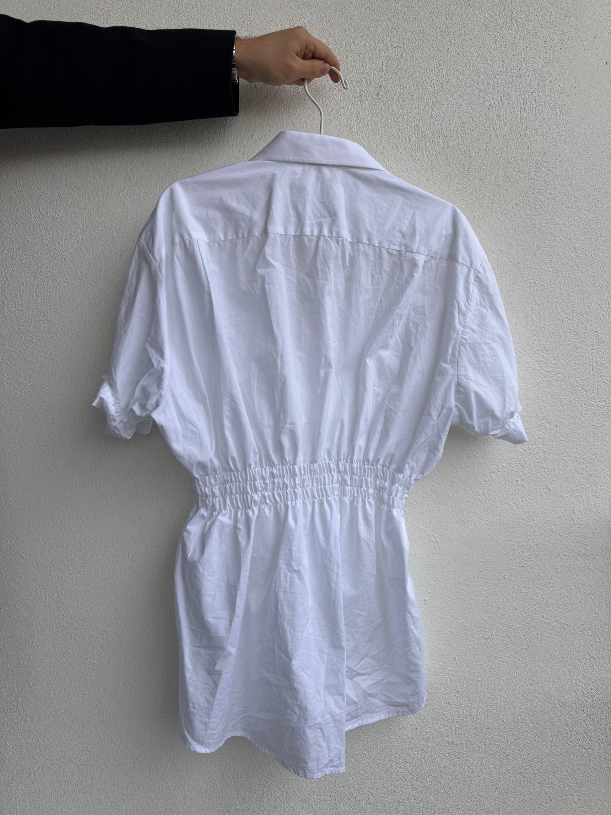 Observera: Blus är ihopsydd mellan två knappar och träs på över huvudet.
