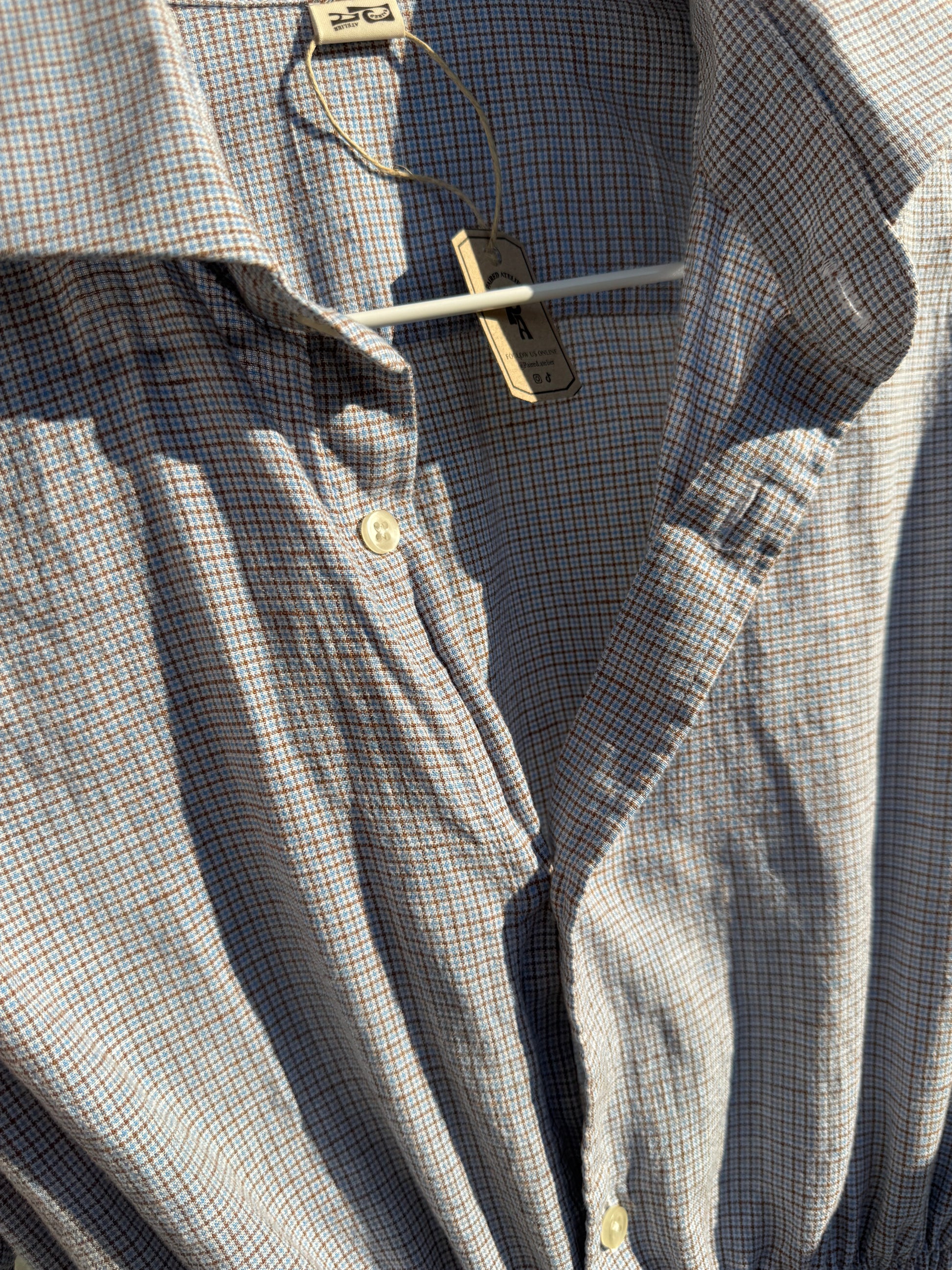 För att se passform på modell hänvisar vi till Paired Ateliers Tiktok, senaste videon, skjorta nr.10