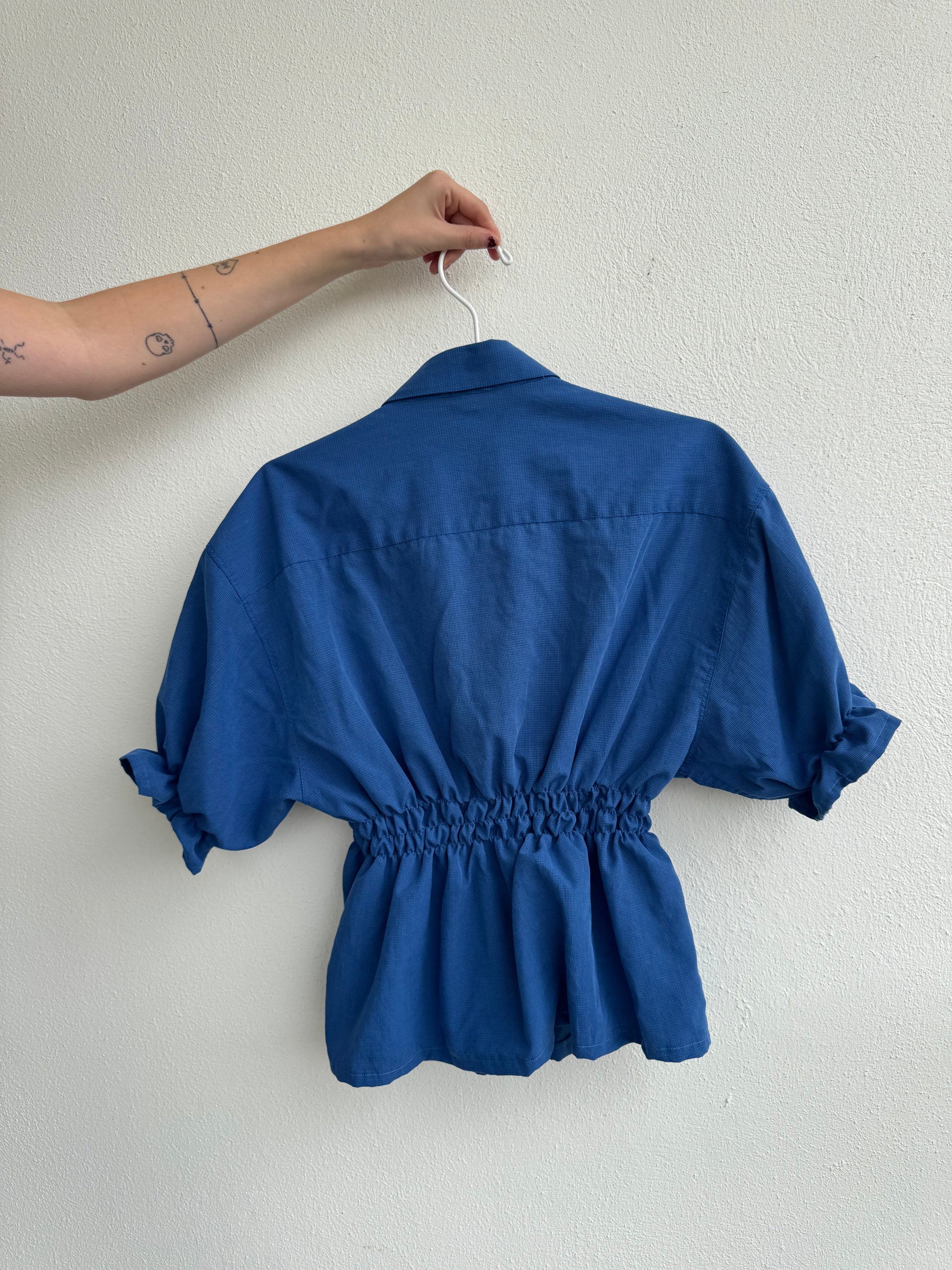 Observera: Blusen är ihopsydd mellan två knappar och träs på över huvudet.