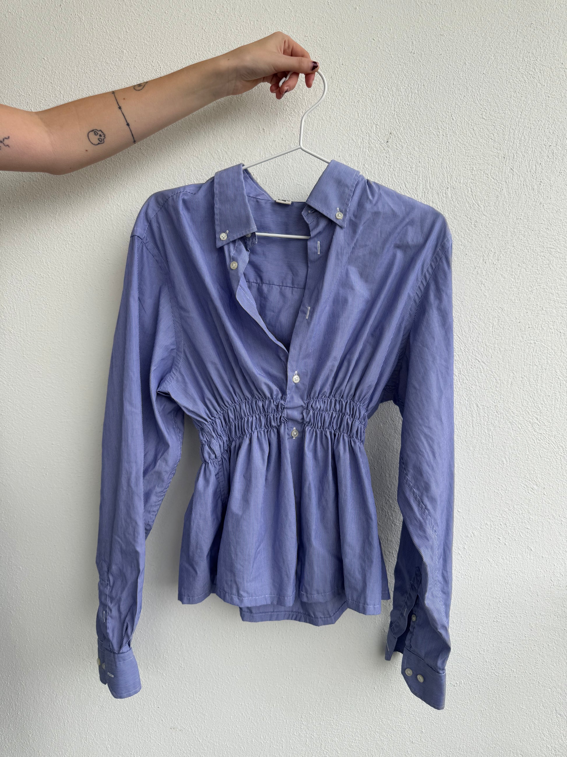 Observera: Skjortan är ihopsydd mellan två knappar och träs på över huvudet.