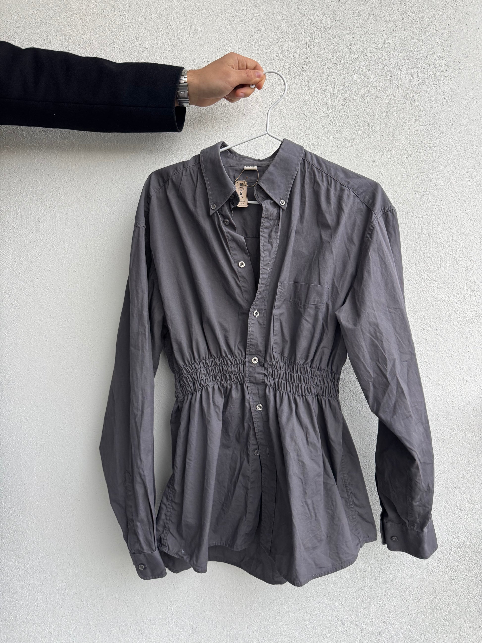 Observera: Skjortan är ihopsydd mellan två knappar och träs på över huvudet.