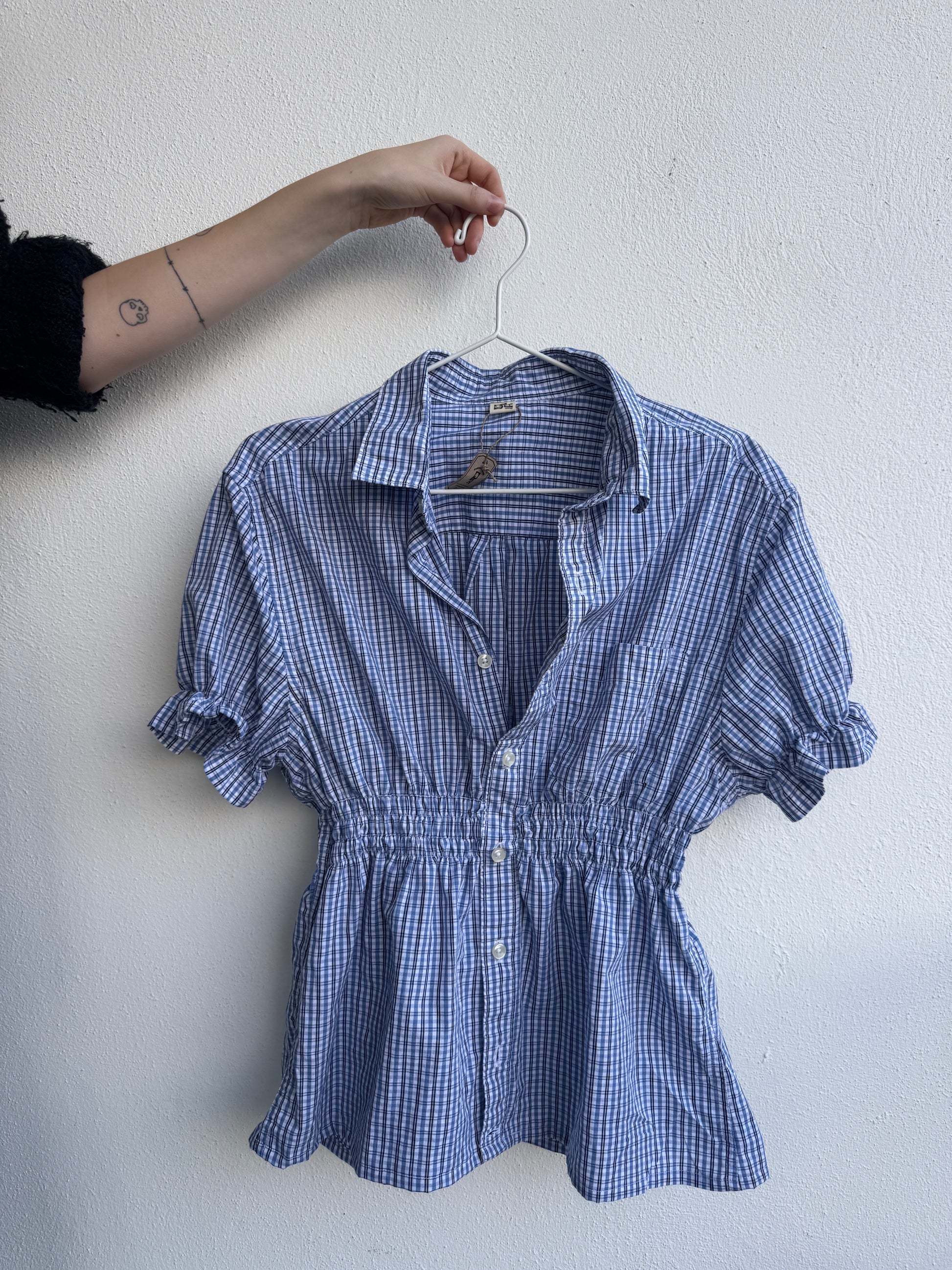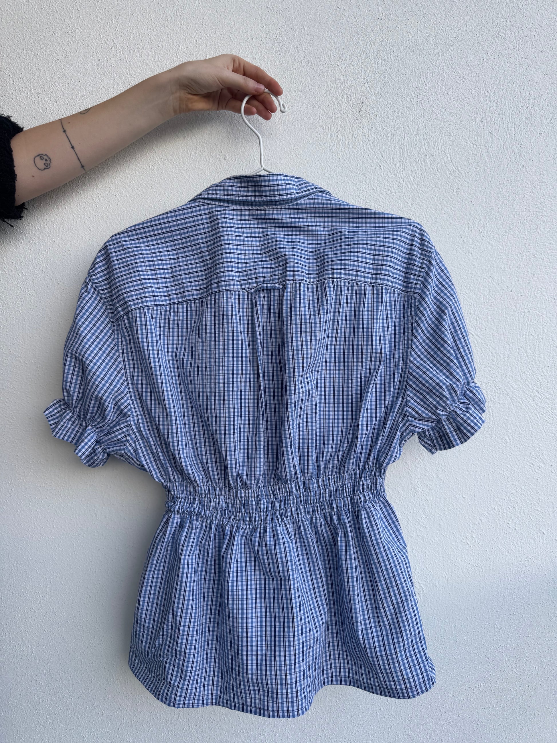 Observera: Skjortan är ihopsydd mellan två knappar och träs på över huvudet.