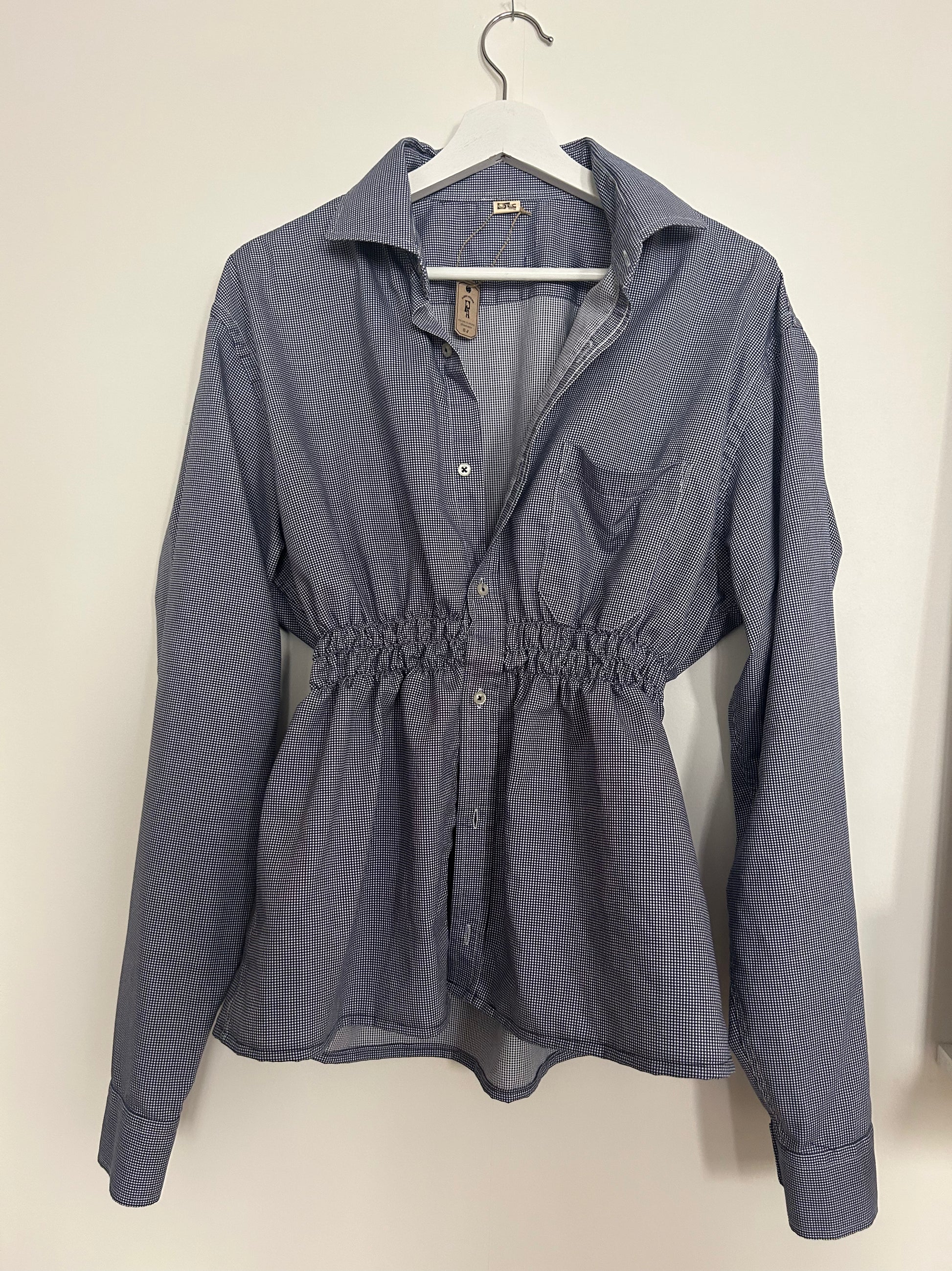 Observera: Skjortan är ihopsydd mellan två knappar och träs på över huvudet.