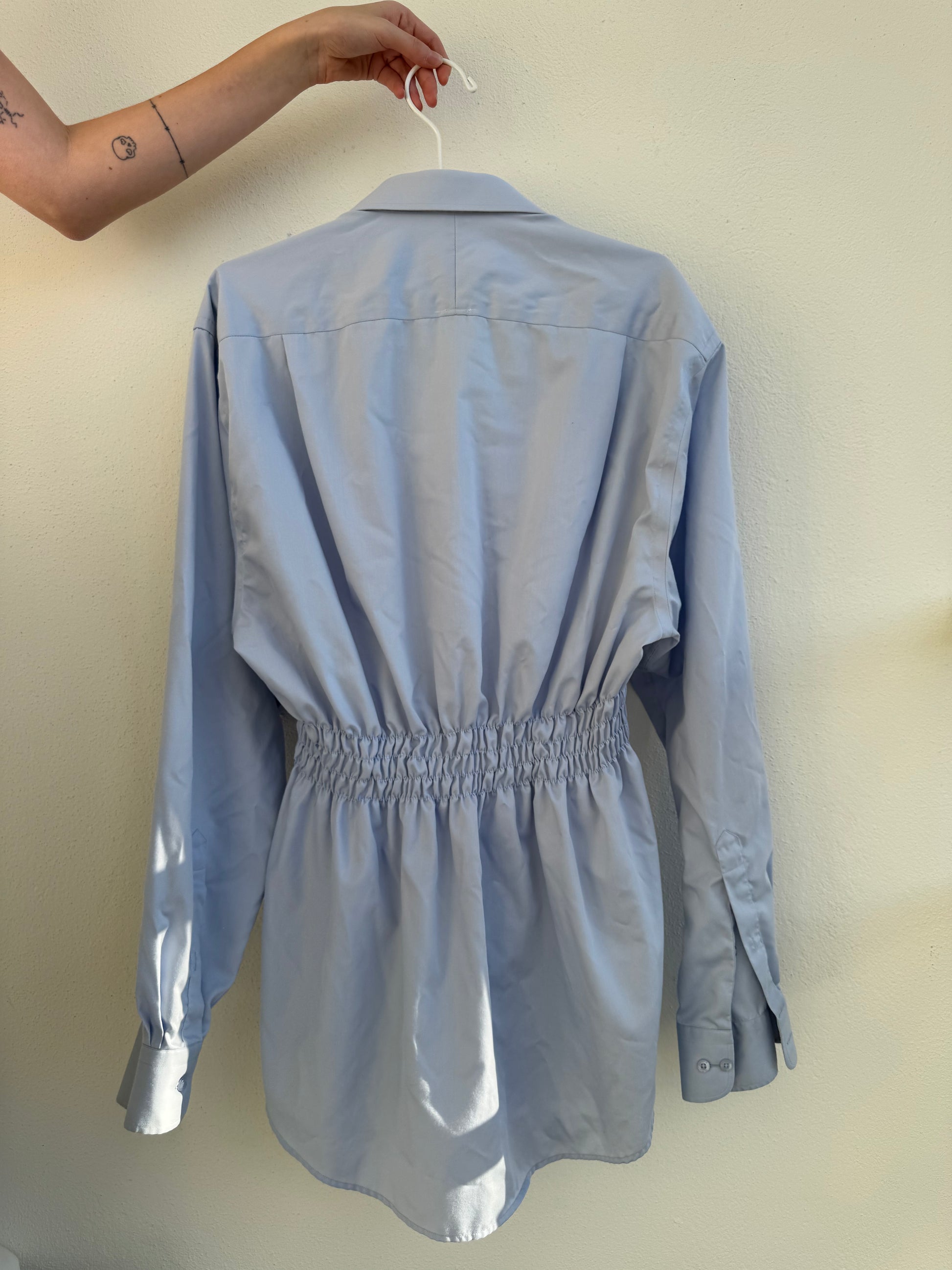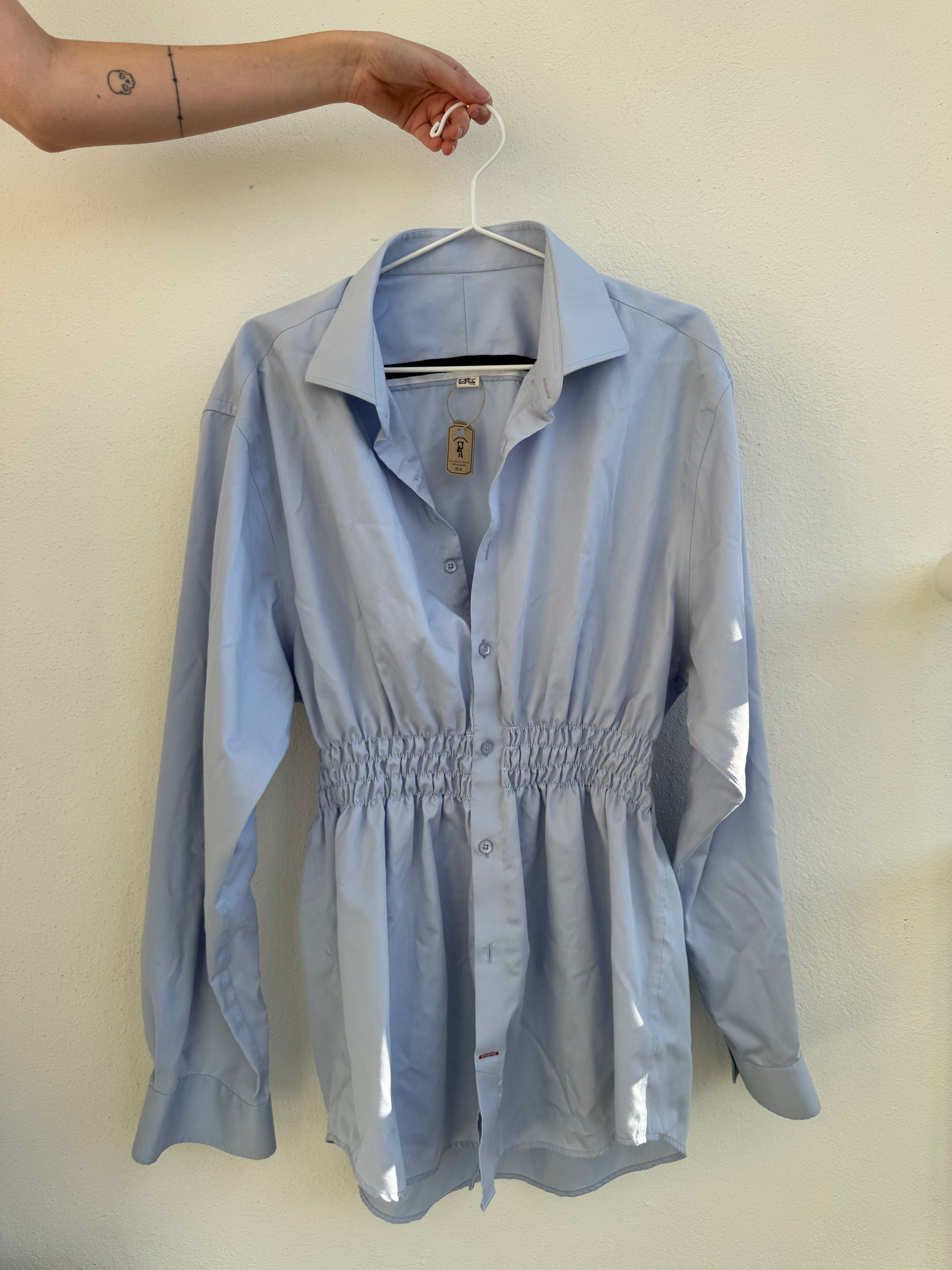 Observera: Skjortan är ihopsydd mellan två knappar och träs på över huvudet.