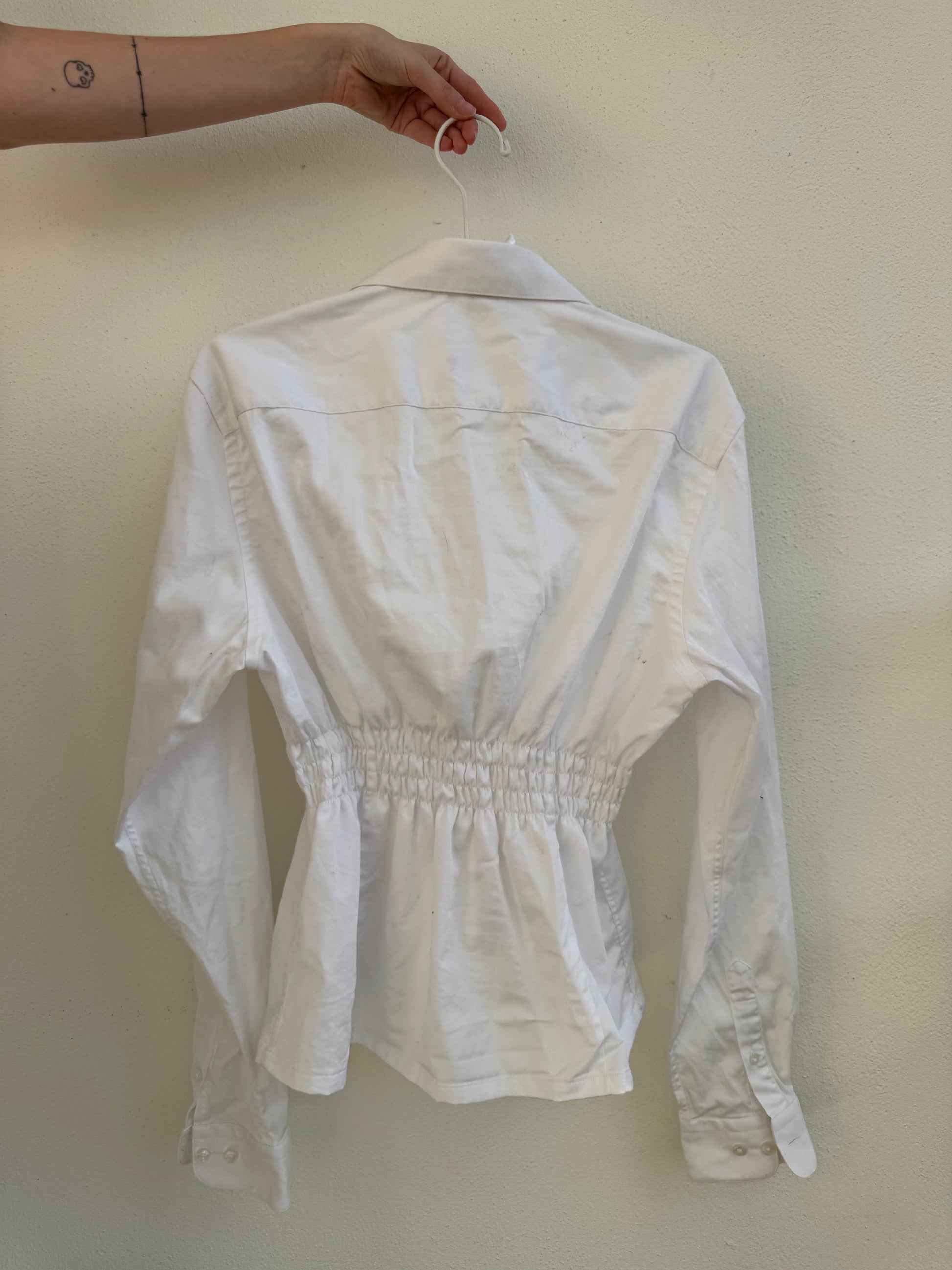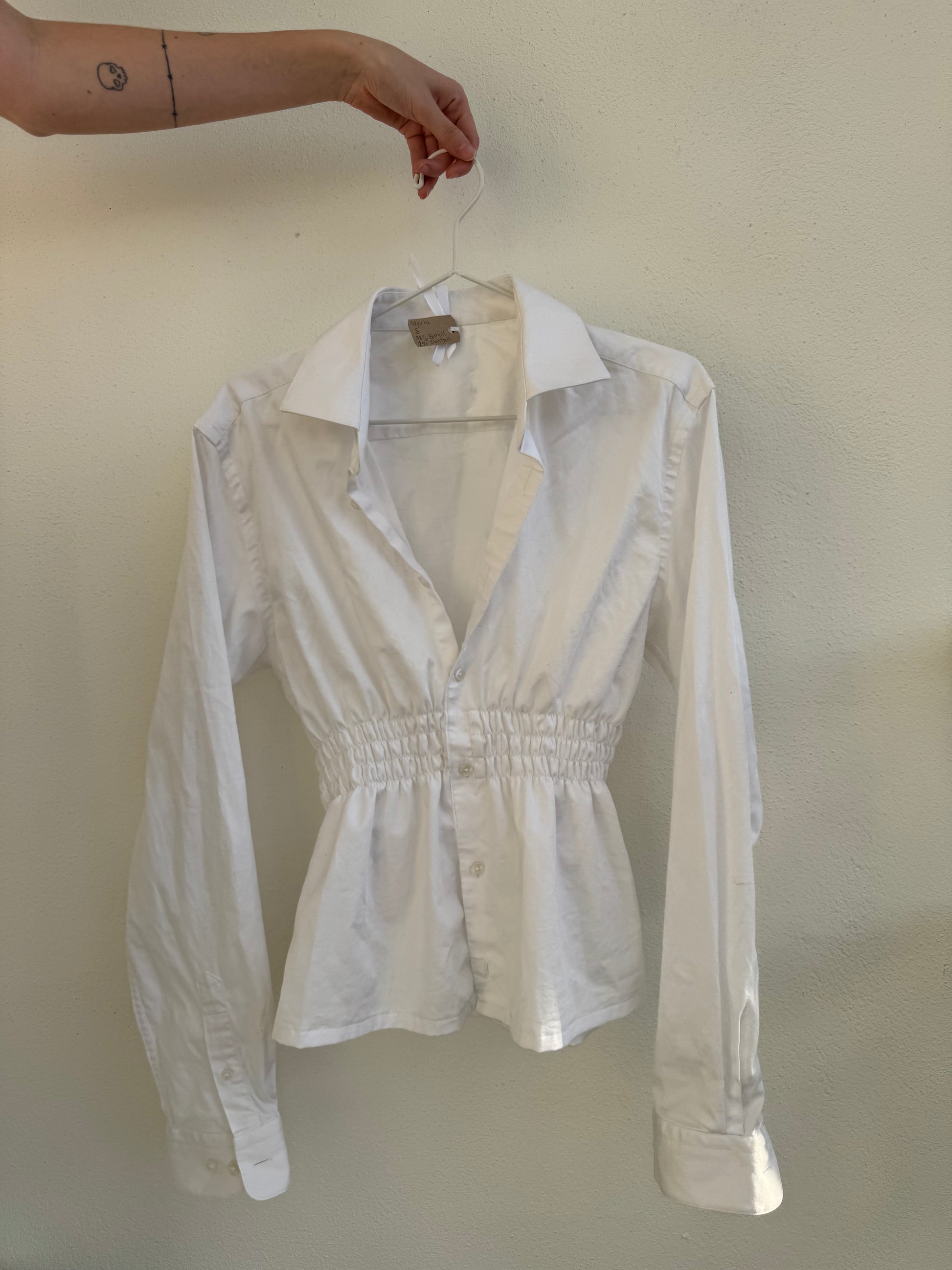 Observera: Skjortan är ihopsydd mellan två knappar och träs på över huvudet.