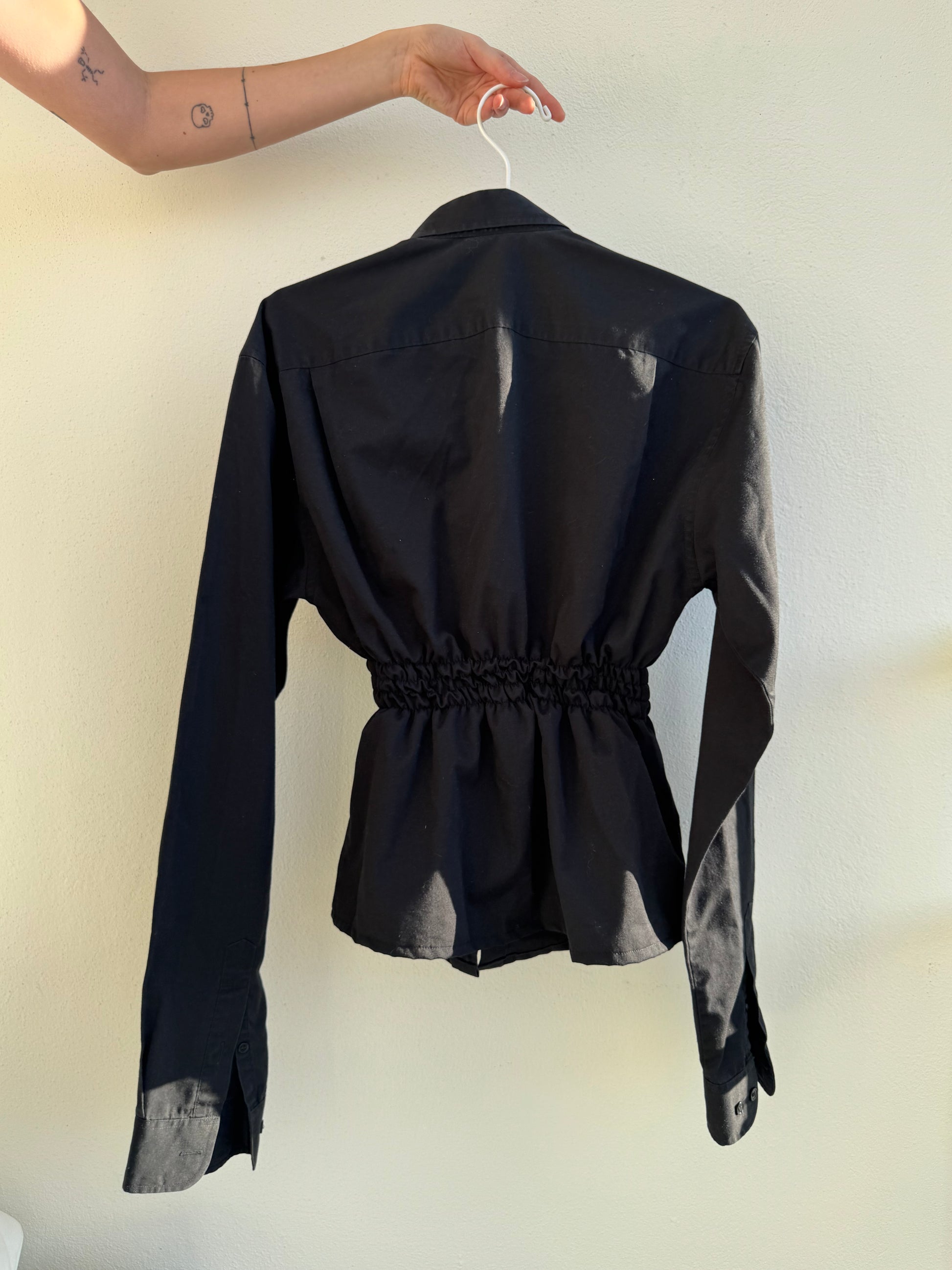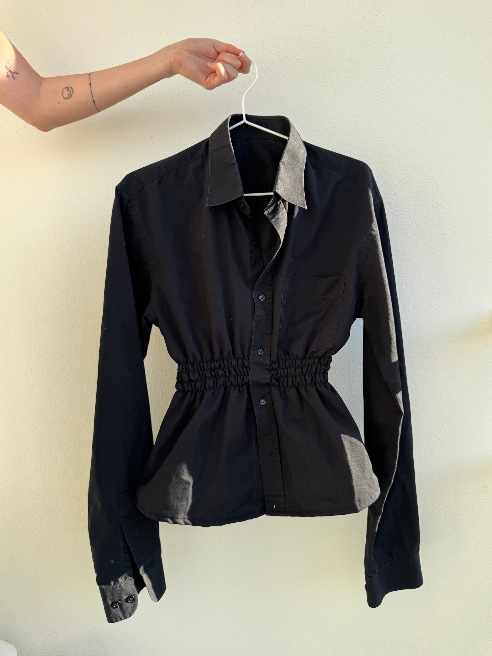 Observera: Skjortan är ihopsydd mellan två knappar och träs på över huvudet.