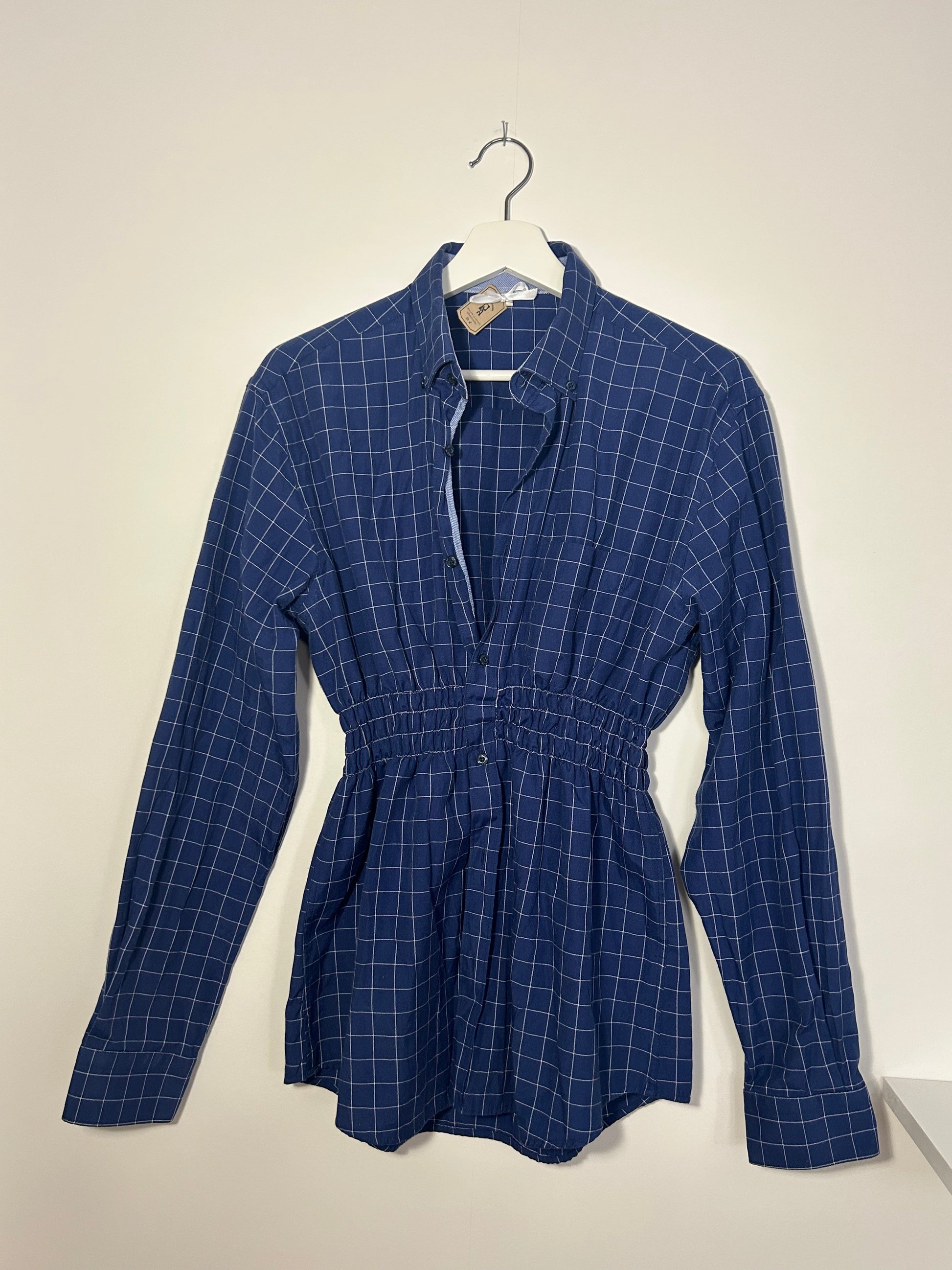 Observera: Skjortan är ihopsydd mellan två knappar och träs på över huvudet.
