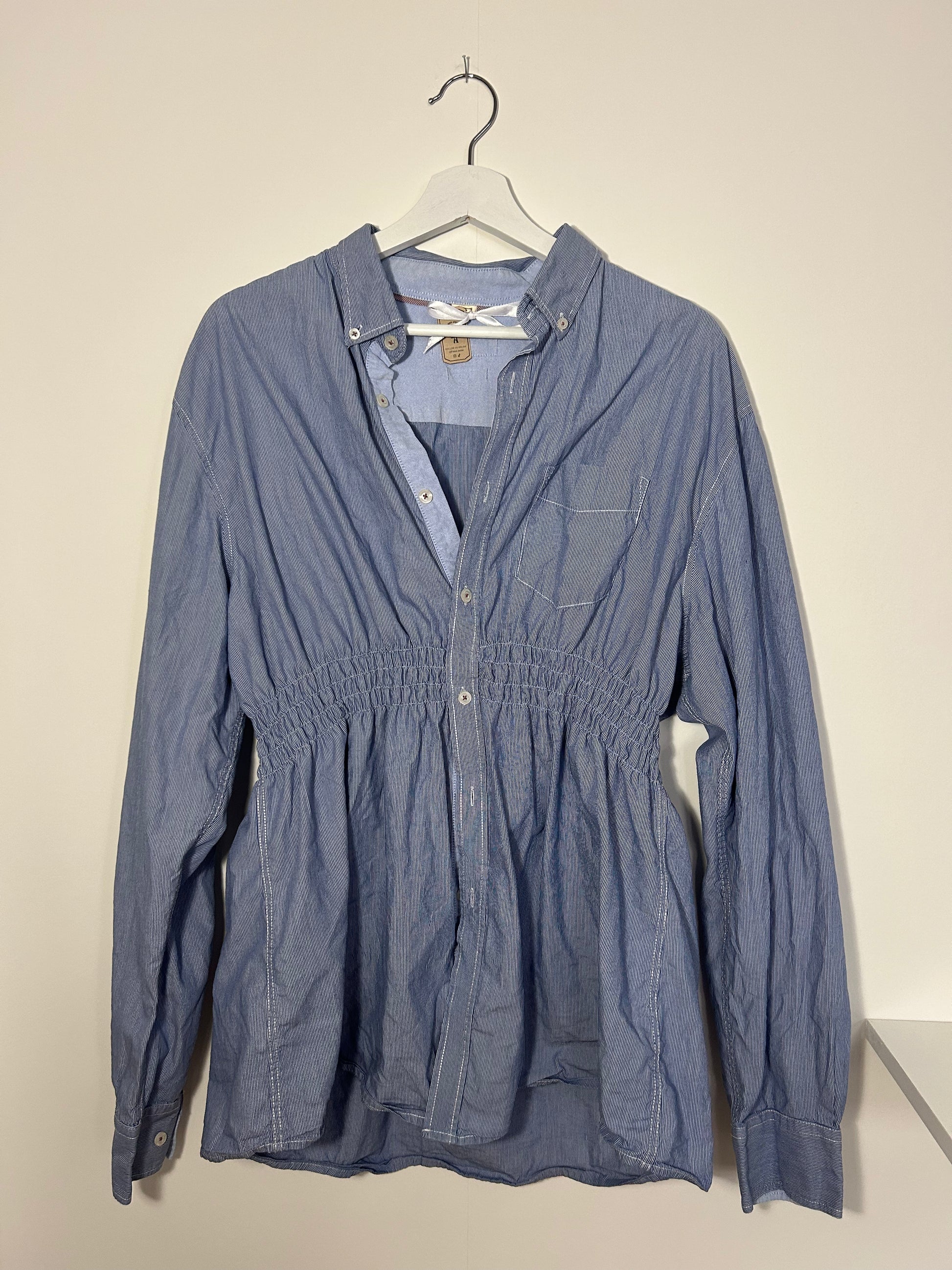Observera: Skjortan är ihopsydd mellan två knappar och träs på över huvudet.